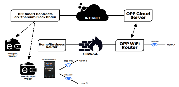 OPP Open WiFi adalah layanan komunitas yang menciptakan akses global, membuka jaringan hotspot Wi-Fi gratis dan memberikan penghargaan kepada setiap peserta untuk dimasukkan dalam tujuan. Sekitar 2,5 miliar pengguna ponsel cerdas di seluruh dunia dan 80% media sosial aktif di seluruh dunia. Akses WiFi telah menjadi bagian dari kehidupan sehari-hari kita. Namun, 76% dari kita terkadang menemukan lokasi yang tidak dapat diakses bahkan jika mereka telah memblokir akses melalui permintaan pembayaran.